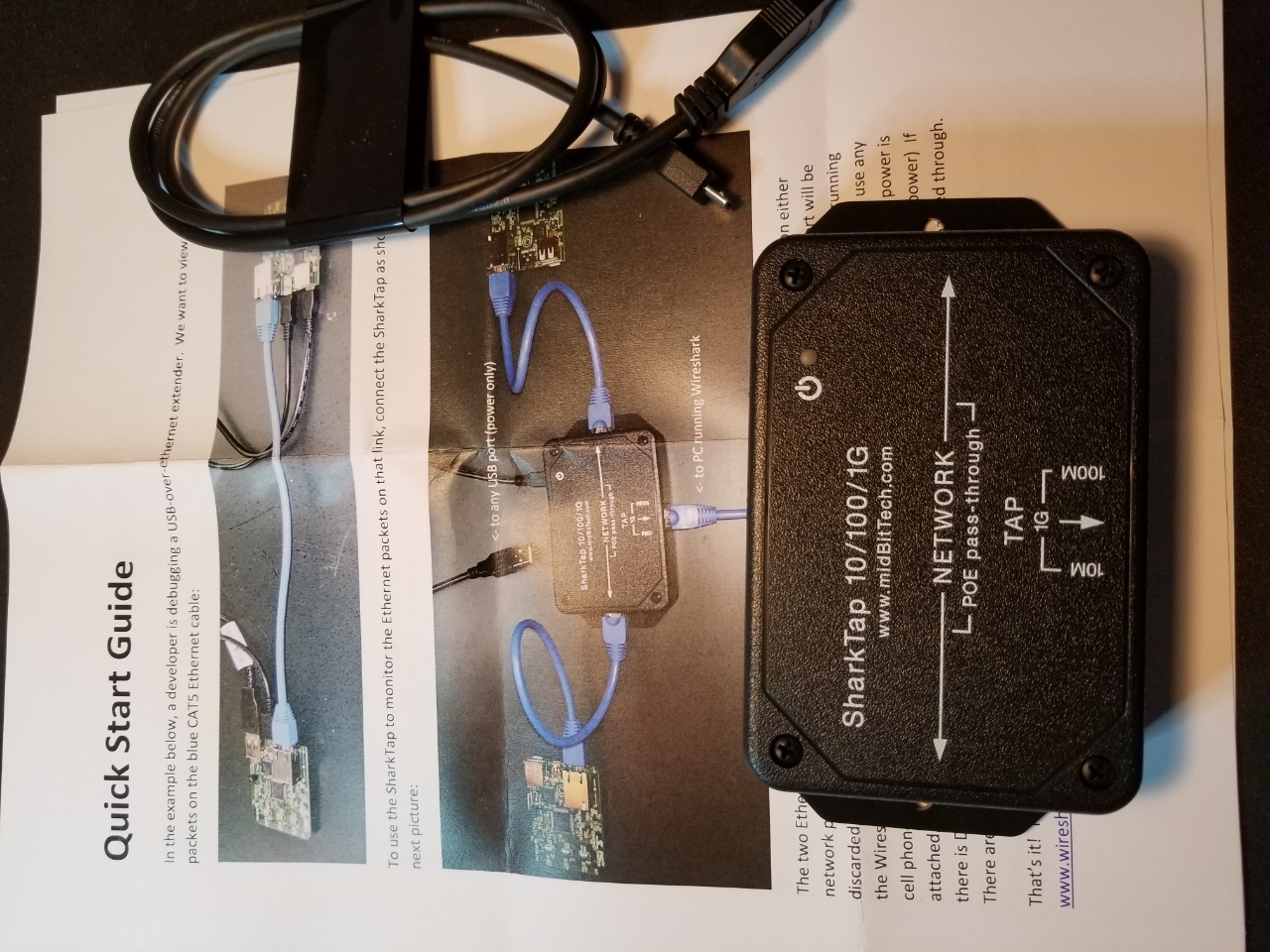 I finally gave in a bought a real hardware TAP. Network TAPs are kind of a niche item, so the available ones are expensive. The most reasonably priced one I found was the SharkTap Gigabit Network Sniffer made by midBit Technologies. The $180 price point is really good compared to the average $500 cost for Network TAPs.